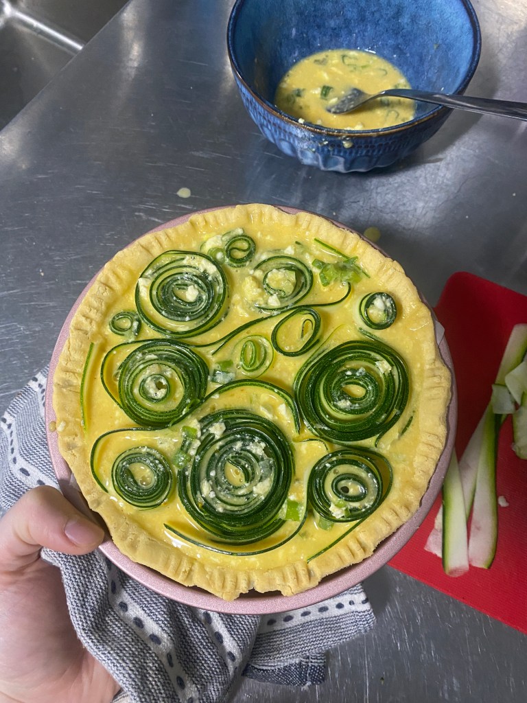 Something to note- zucchini holds a lot of moisture, if you don’t do the steps correctly the pastry could become soggy. The quiche could also split along the top. Not necessarily a big issue but if you’re looking for aesthetics this isn’t ideal