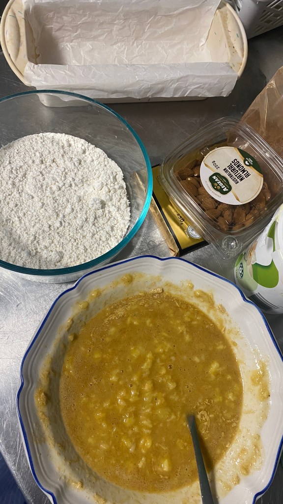 - Mash your bananas and mix in the egg and butter