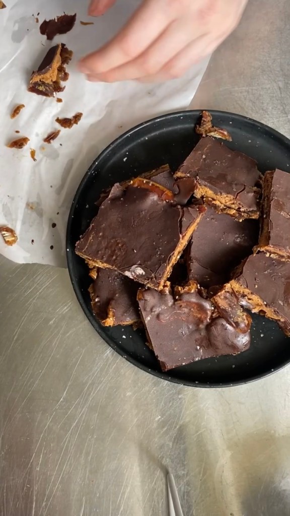 - Spread the chocolate across the bark and sprinkle on a little salt