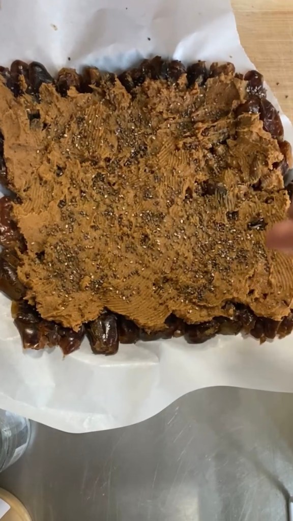 - Spread over the biscoff and sprinkle the chia seeds evenly